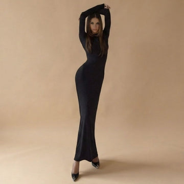 Eldra | Maxi Sukienka z 7/8 Rękawami z Satyny