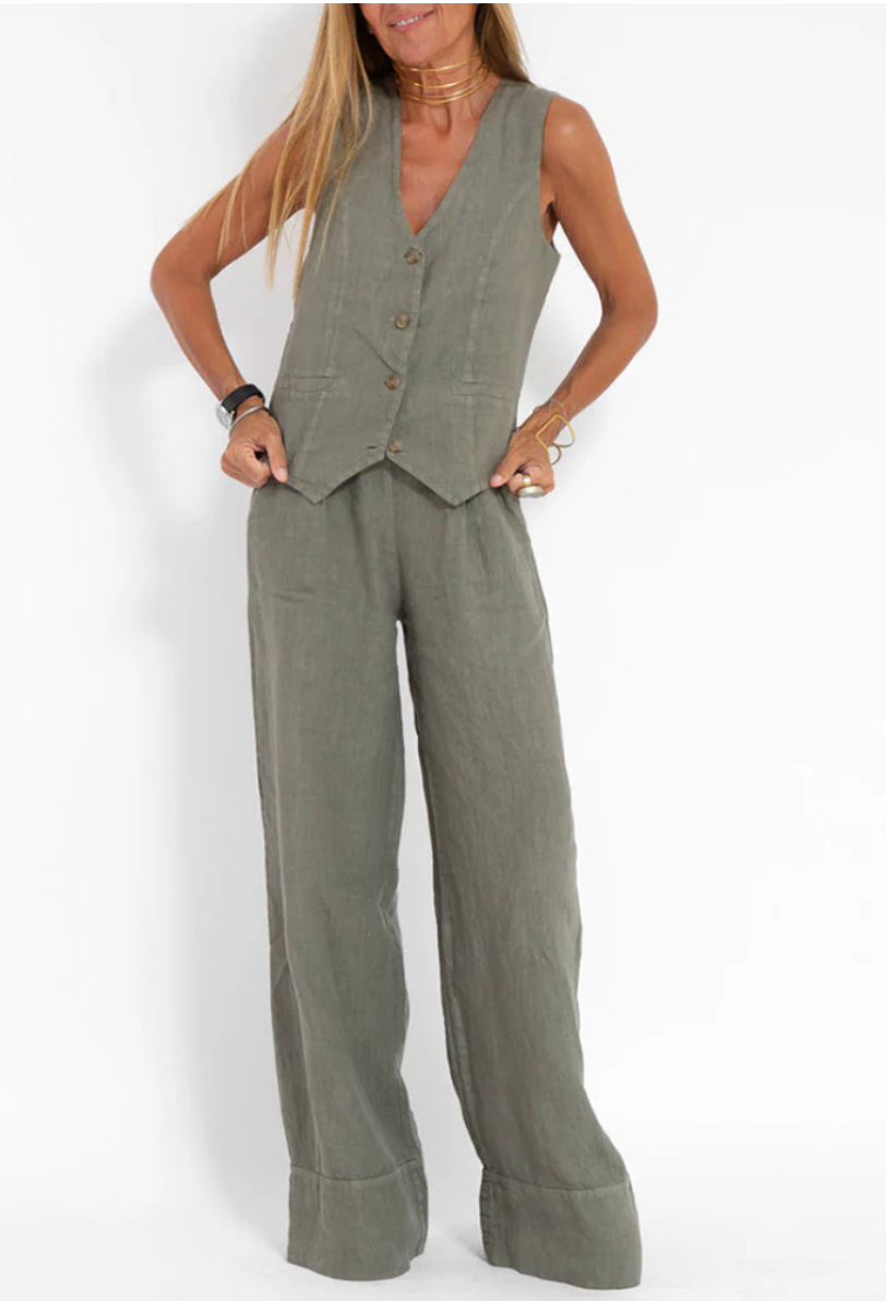 Vivienne - Dwuczęściowy zestaw z prostymi spodniami i topem z dekoltem w serek