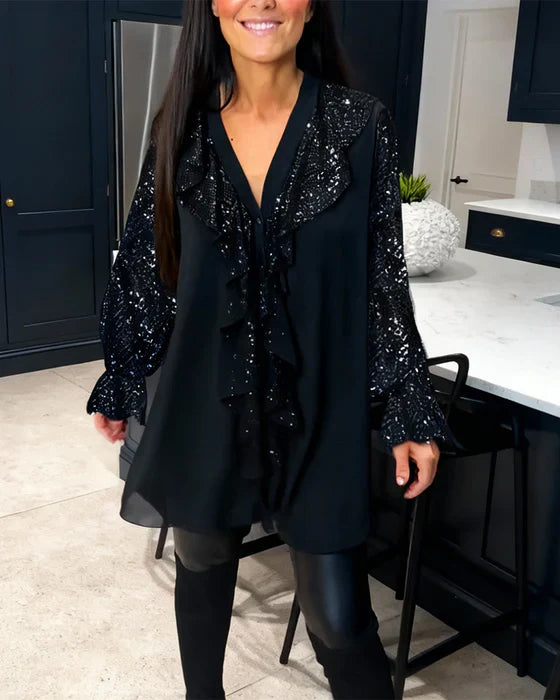 ✔ Efektowne rękawy: błyszczące, lekko transparentne rękawy z delikatnymi mankietami nadają bluzce wyjątkowego charakteru.
