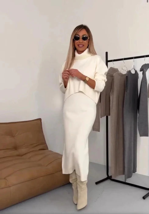 • Stylowy komplet 2-częściowy – golf i spódnica midi